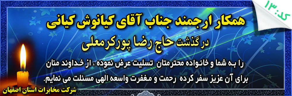 در این روش با انتخاب یکی از طرح های زیر و یادداشت نمودن کد بنر عرض تسلیت خود ، می توانید از طریق تماس با شماره ۰۳۱۳۳۳۹۳۰۵۵ و یا ۰۹۱۳۵۶۵۳۳۸۳ نسیت به سفارش اقدام نمایید .